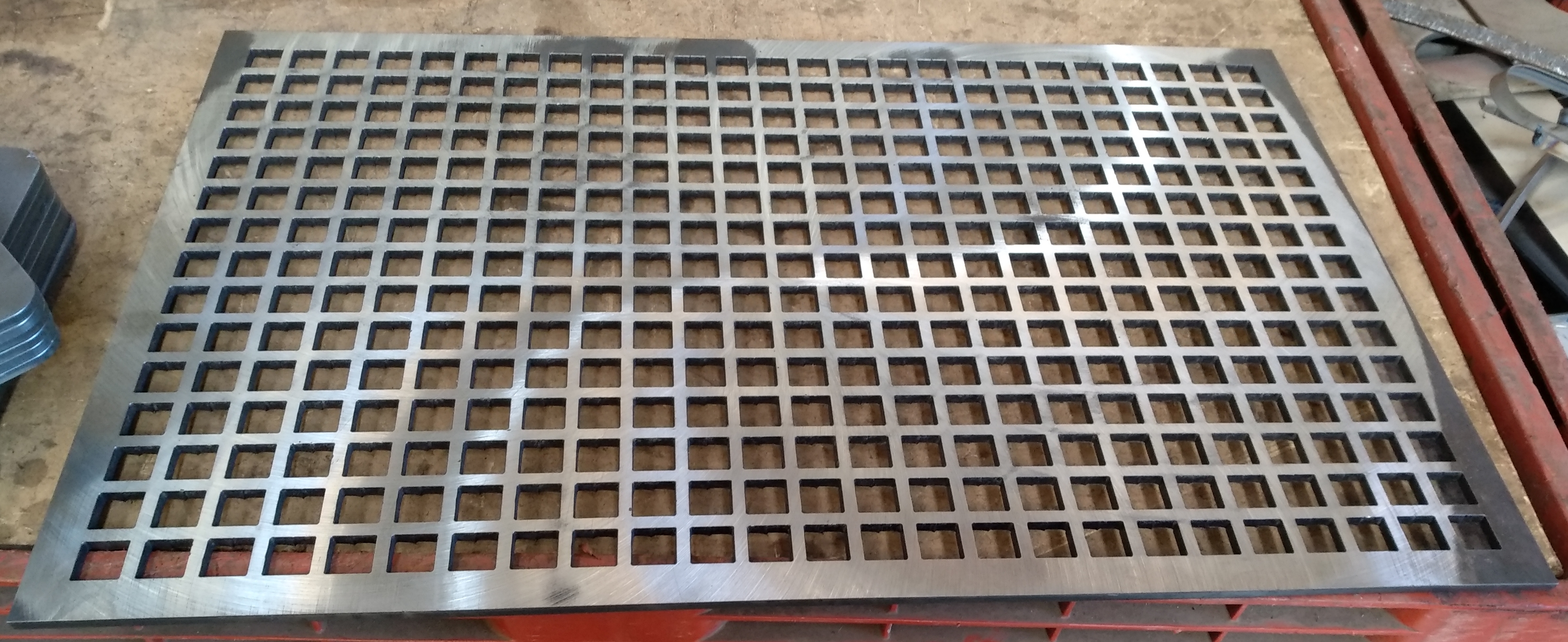 840 x 520 x 8mm thk c/w 375 No. 24mm Square Cut Holes